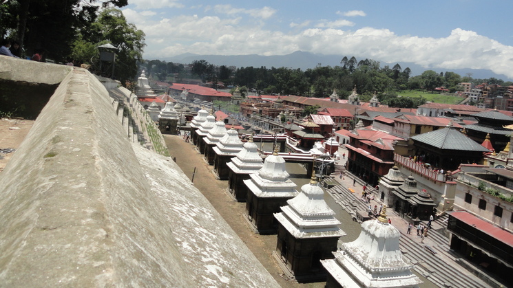 In Pashupatinath stroomt de Bagmati rivier en staat de belangrijkste Shiva tempel. Langs de rivier zijn plekken aangelegd waar de crematies van overleden hindoes plaatsvinden.