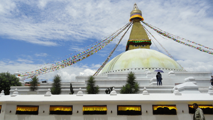 De Bauddhanath stoepa is een van de grootste en meest vereerde in de wereld. De boeddhisten lopen met de klok mee om de stoepa heen en zeggen ze hun gebed.
